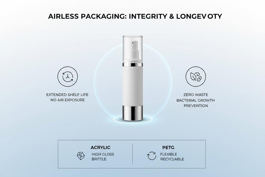 Not all airless bottles are created equal. The choice of material impacts both the look and the environmental footprint of the product.