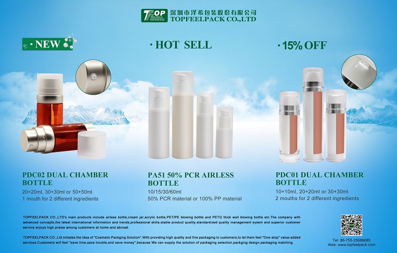 Cosmetics Packaging Proposal in July from TopfeelPack, Popular Dual Chamber Bottles for Skin Care & Eye Care.