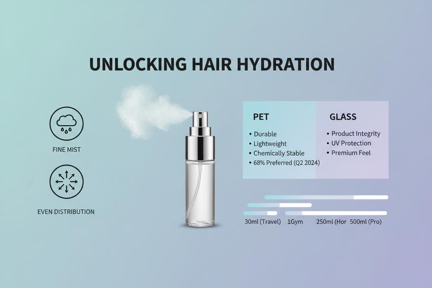 Both materials support consistent mist quality, but the choice depends on whether you prioritize portability or purity. PET suits active routines; glass elevates stationary setups like vanity counters.